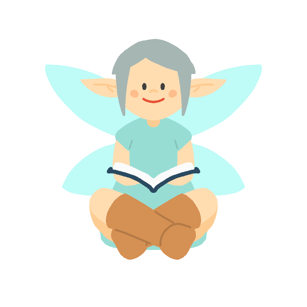 本を読んでいるエルフ(妖精)の無料イラストです。