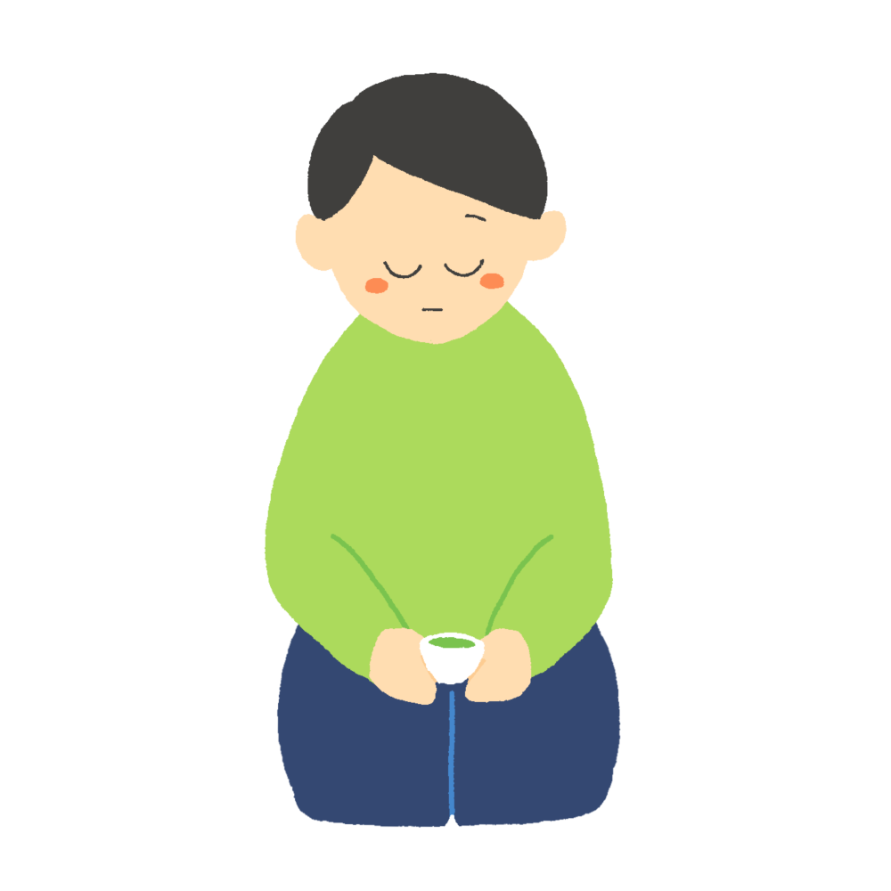 正座でお茶を飲んでいる男性のイラスト 2024 4/22 イラスト 人物 散歩・リラックス 食事 FREE DOWNLOAD / この素材をダウンロードする 正座でお茶を飲んでいる男性の無料イラストです。 使用方法 「てがキラ」の素材は、すべてリンクフリー・クレジット表記なしで利用していただくことができます。 ご利用前に必ず利用規約をご確認ください。 関連するイラスト素材 正座でお茶を飲んでいる女性のイラスト 双子のベビーカーを押す母親のイラスト ベビーカーを押す母親のイラスト 生ビールを飲む女性のイラスト イラスト 人物 散歩・リラックス 食事 シェアしてくれたらうれしいです URLをコピーしました! URLをコピーしました! 正座で瞑想する女性のイラスト 正座で瞑想する男性のイラスト このイラストに関連する言葉から探す 人物, 食事, 散歩・リラックス 他のイラストを検索する リクエストする イラストのリクエストをする