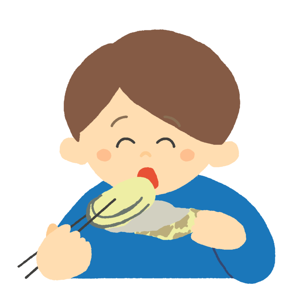 焼き牡蠣を食べる人のイラスト