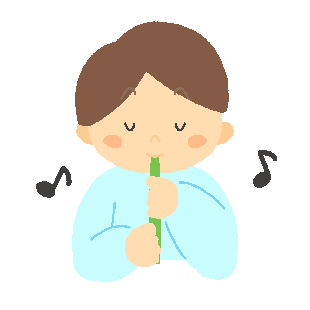 草笛(茎)を吹く男の子のイラスト