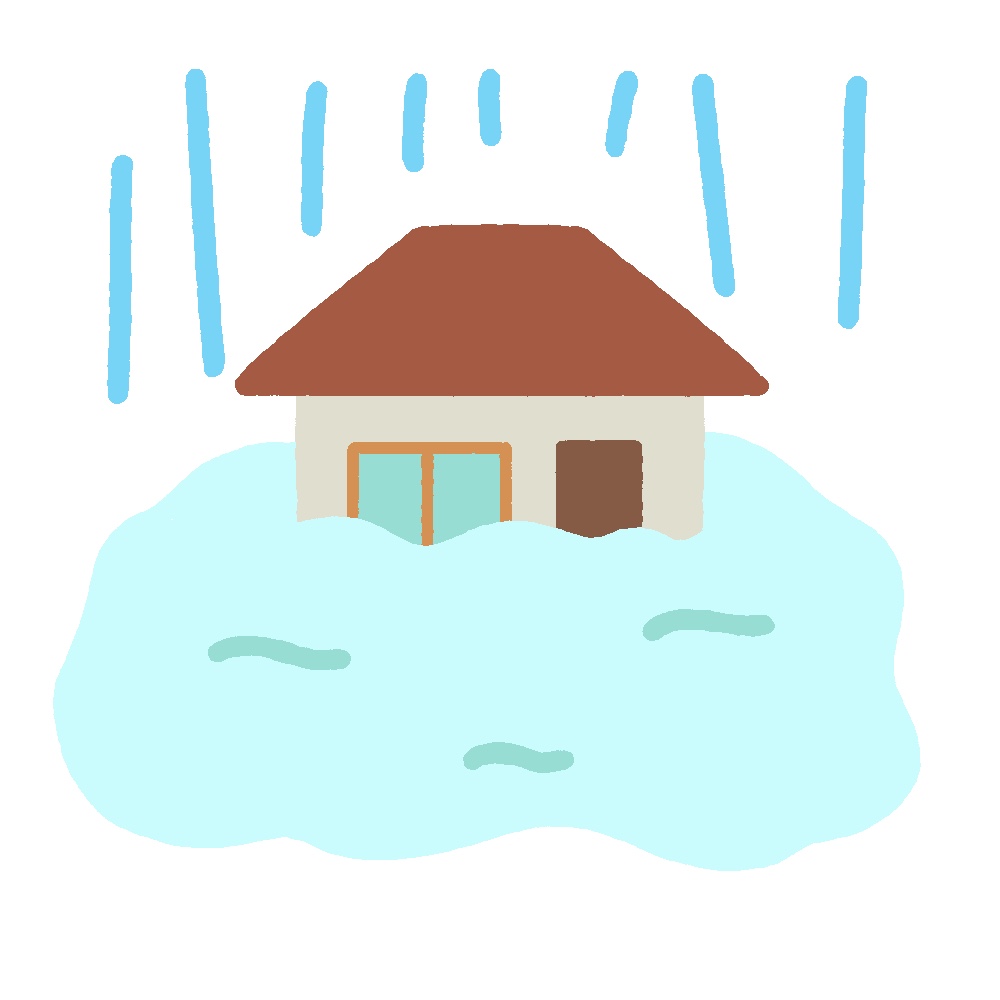 大雨で浸水した家のイラスト