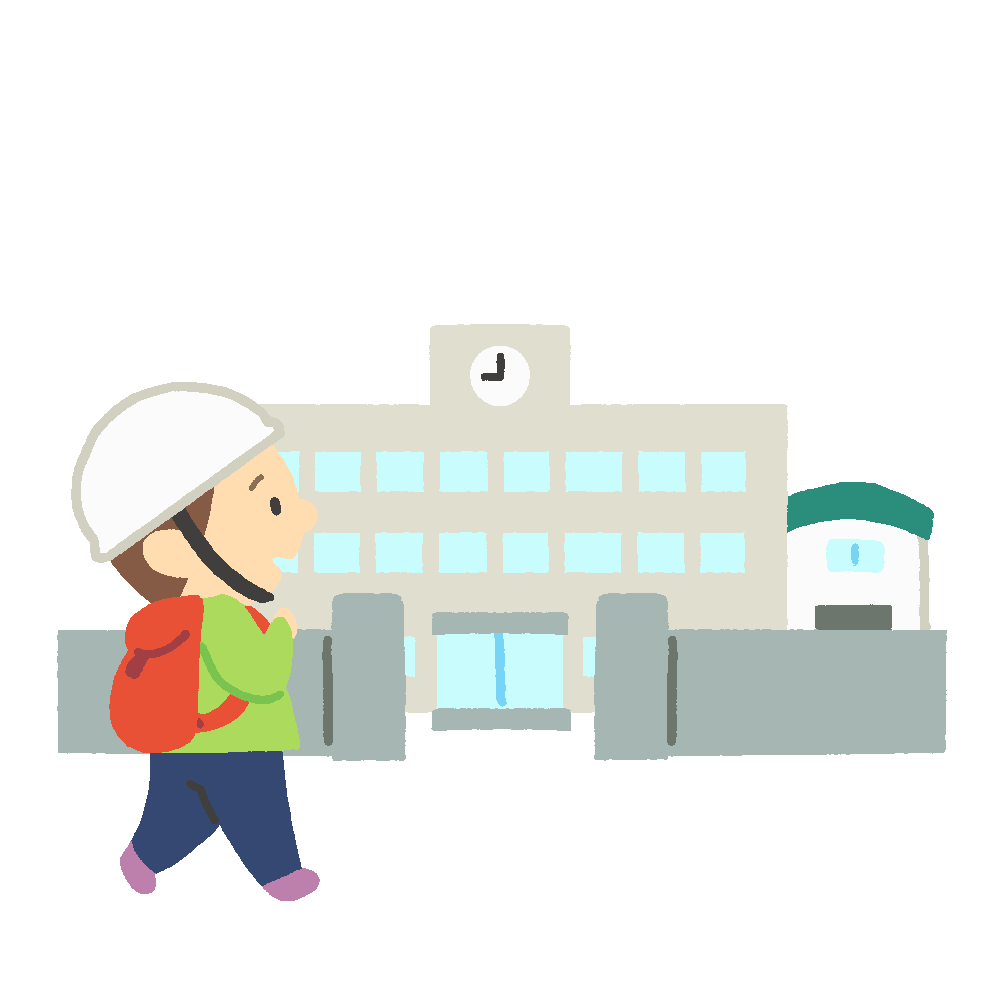 避難所の学校・体育館に避難する人の無料イラストです。防災訓練のイラストとしても使えます。