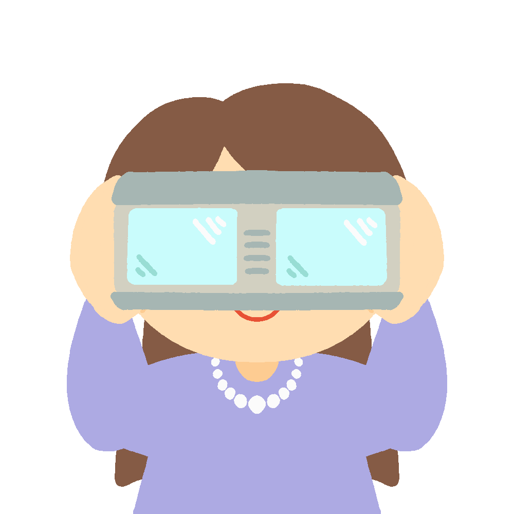 オペラグラスで演劇やコンサート、ミュージカルを鑑賞している女性の無料イラストです。
