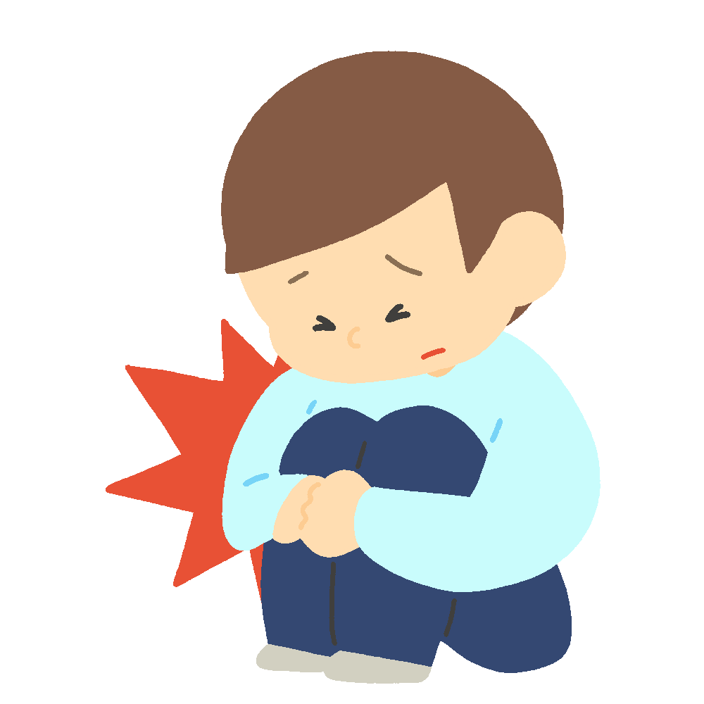 お腹が痛くて体操座りで座りこんでいる男性のイラスト