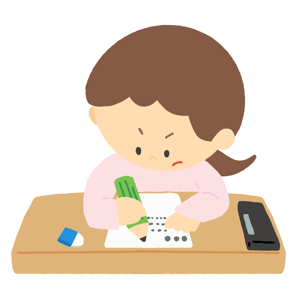 テスト・試験を受けている女の子の無料イラストです。受験などにも。