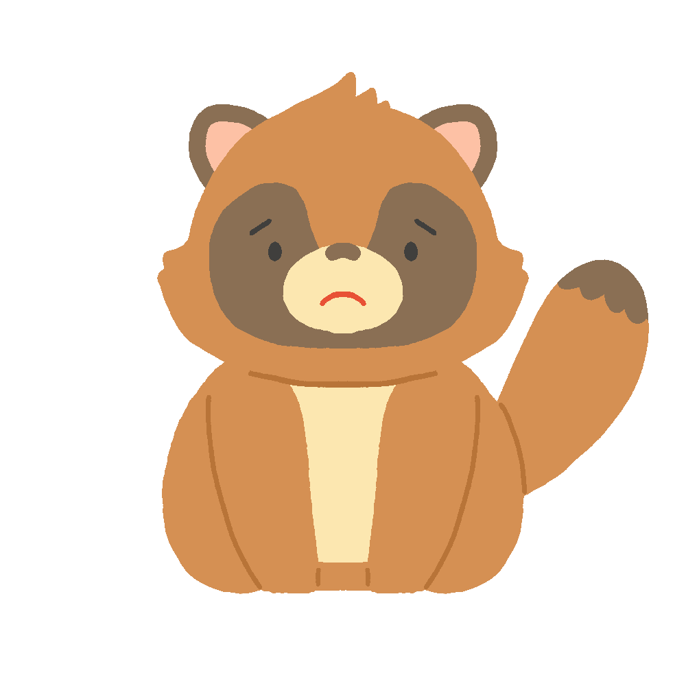 悲しい顔で座るタヌキのイラスト