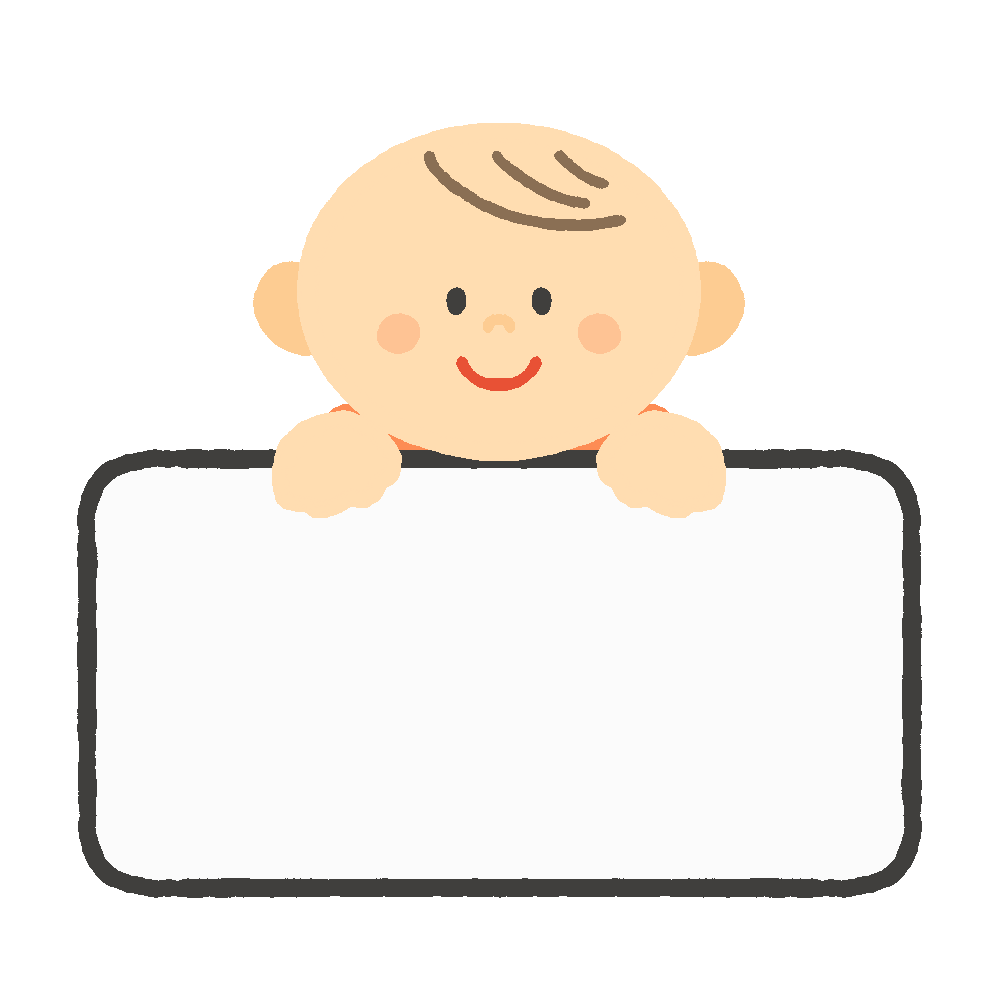 赤ちゃんのメッセージフレーム(オレンジ色の服)の無料イラストです。