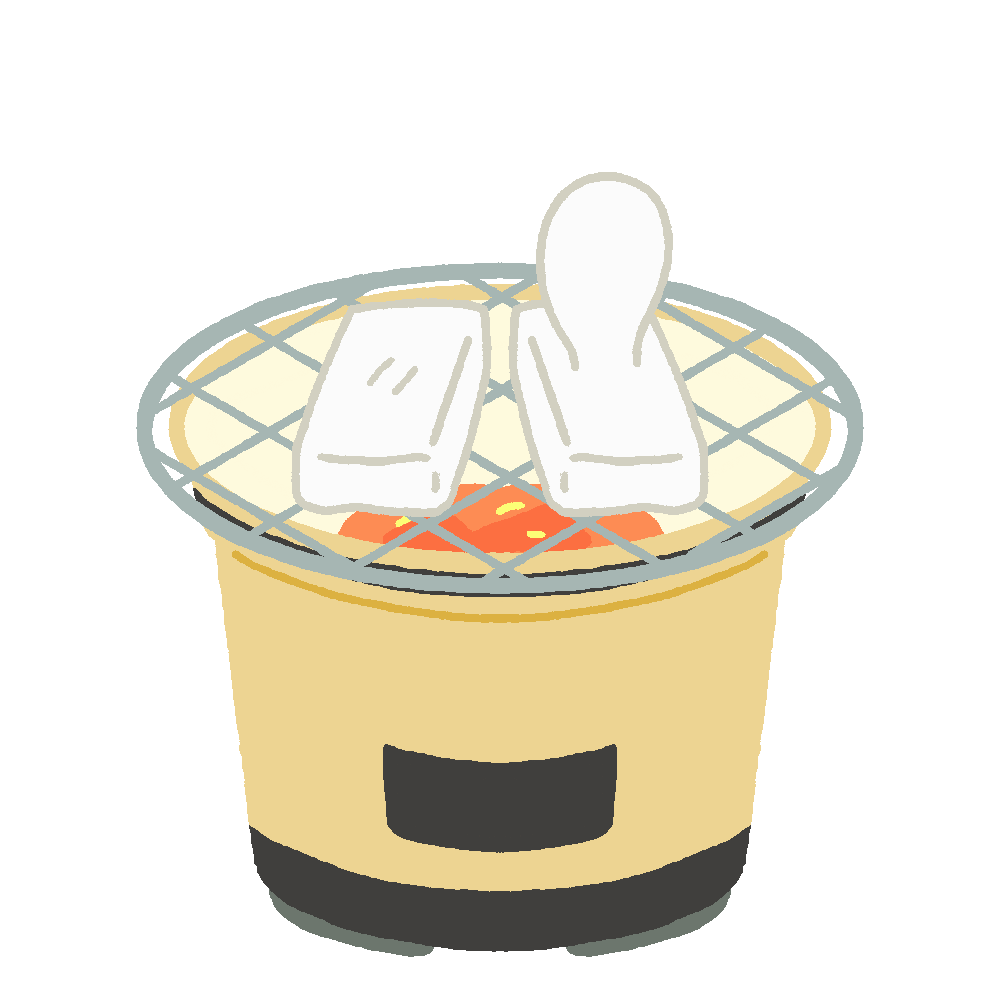 七輪でお餅(膨らんだ)を焼いている無料イラスト