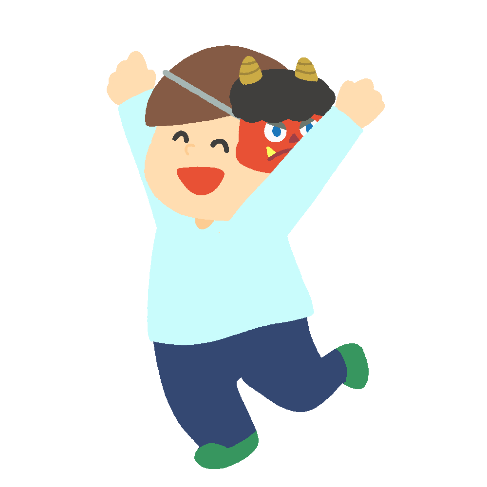 鬼のお面をかぶって逃げる男性のイラスト 2024 11/05 イラスト 人物 保育園・幼稚園 冬(12月〜2月) 節分 FREE DOWNLOAD / この素材をダウンロードする 節分の豆まきで鬼のお面をかぶって逃げる男性の無料イラストです。 使用方法 「てがキラ」の素材は、すべてリンクフリー・クレジット表記なしで利用していただくことができます。 ご利用前に必ず利用規約をご確認ください。 関連するイラスト素材 笑顔で走って逃げる女性のイラスト 笑顔で走って逃げる男性のイラスト 鬼のお面をかぶって逃げる女性のイラスト 恵方巻きを食べる女性のイラスト イラスト 人物 保育園・幼稚園 冬(12月〜2月) 節分 シェアしてくれたらうれしいです URLをコピーしました! URLをコピーしました! 鬼のお面をかぶって逃げる女性のイラスト 笑顔で走って逃げる男性のイラスト このイラストに関連する言葉から探す 人物, 冬(12月〜2月), 保育園・幼稚園, 節分 他のイラストを検索する リクエストする イラストのリクエストをする
