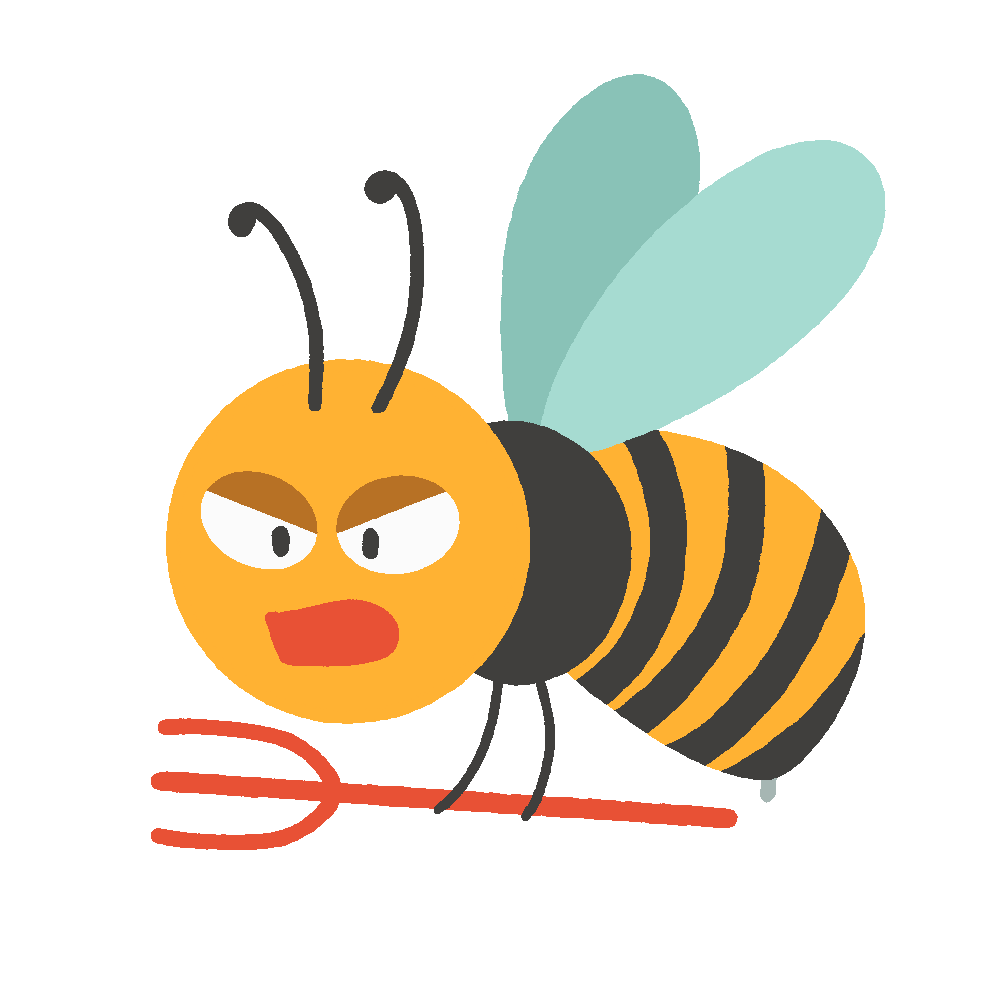 怒って刺そうとしているかわいい蜂のキャラクターの無料イラストです。