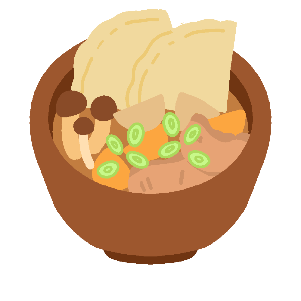 せんべい汁(せんべいが入った味噌汁)のイラスト