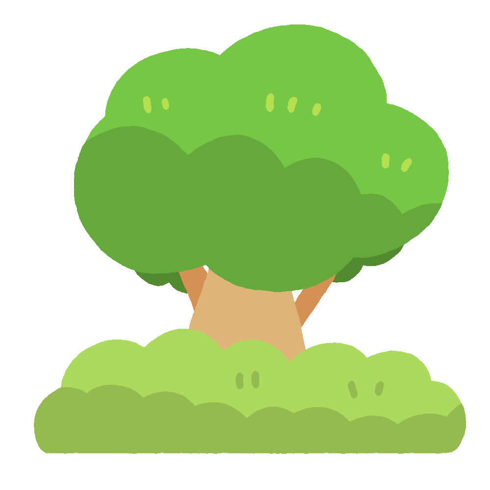 背の低い植木と広葉樹の無料イラストです。