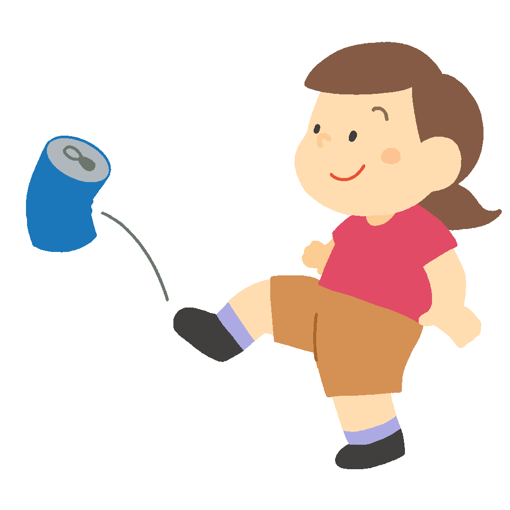 ぽーんとかんけりをしている女の子の無料イラストです。