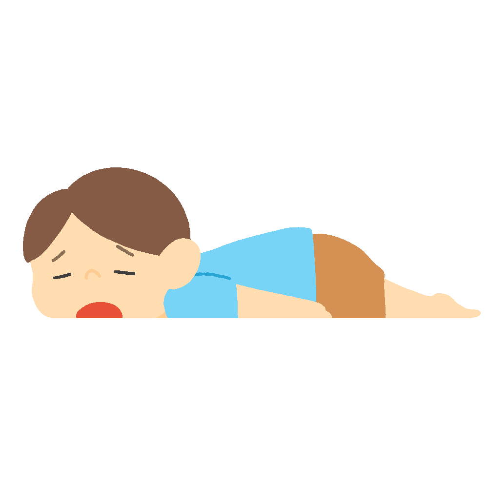 ダルそうに寝転んで起き上がれない男性の無料イラスト