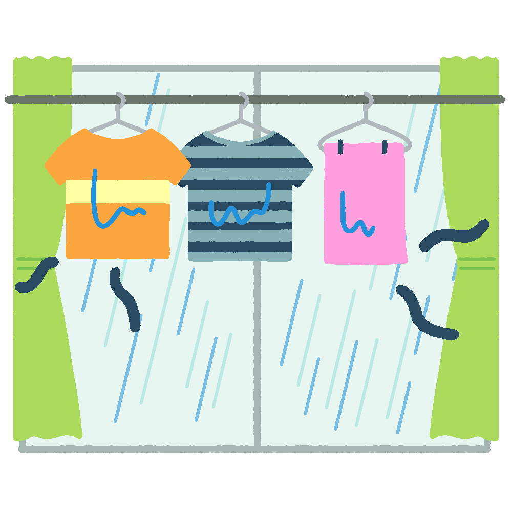 室内干しで生乾きになった洗濯物のイラスト 2025 2/03 イベント・行事 季節・カレンダー 夏(6月〜8月) 梅雨 衛生・掃除・洗濯 FREE DOWNLOAD / この素材をダウンロードする 梅雨や雨の日に、室内干しで生乾きになって生乾き臭を放っている洗濯物の無料イラスト素材です。 使用方法 「てがキラ」の素材は、すべてリンクフリー・クレジット表記なしで利用していただくことができます。 ご利用前に必ず利用規約をご確認ください。 関連するイラスト素材 室内干しのイラスト 室内干しをする女性のイラスト アジサイのイラスト カバンで雨を避けて走る男性のイラスト イベント・行事 季節・カレンダー 夏(6月〜8月) 梅雨 衛生・掃除・洗濯 シェアしてくれたらうれしいです URLをコピーしました! URLをコピーしました! 室内干しをする女性のイラスト 室内干しのイラスト このイラストに関連する言葉から探す 夏(6月〜8月), 衛生・掃除・洗濯, 梅雨 他のイラストを検索する リクエストする イラストのリクエストをする