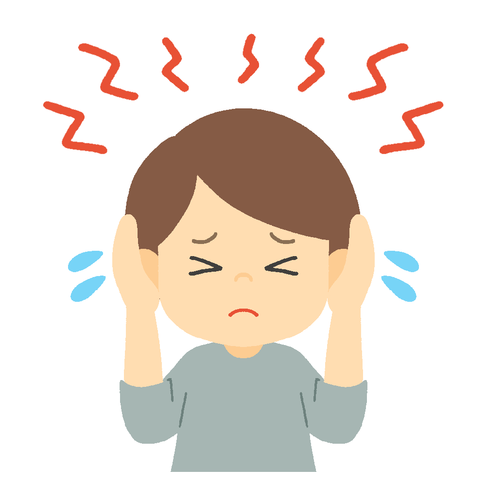 耳鳴りがして頭が痛い男性の無料イラスト素材です。