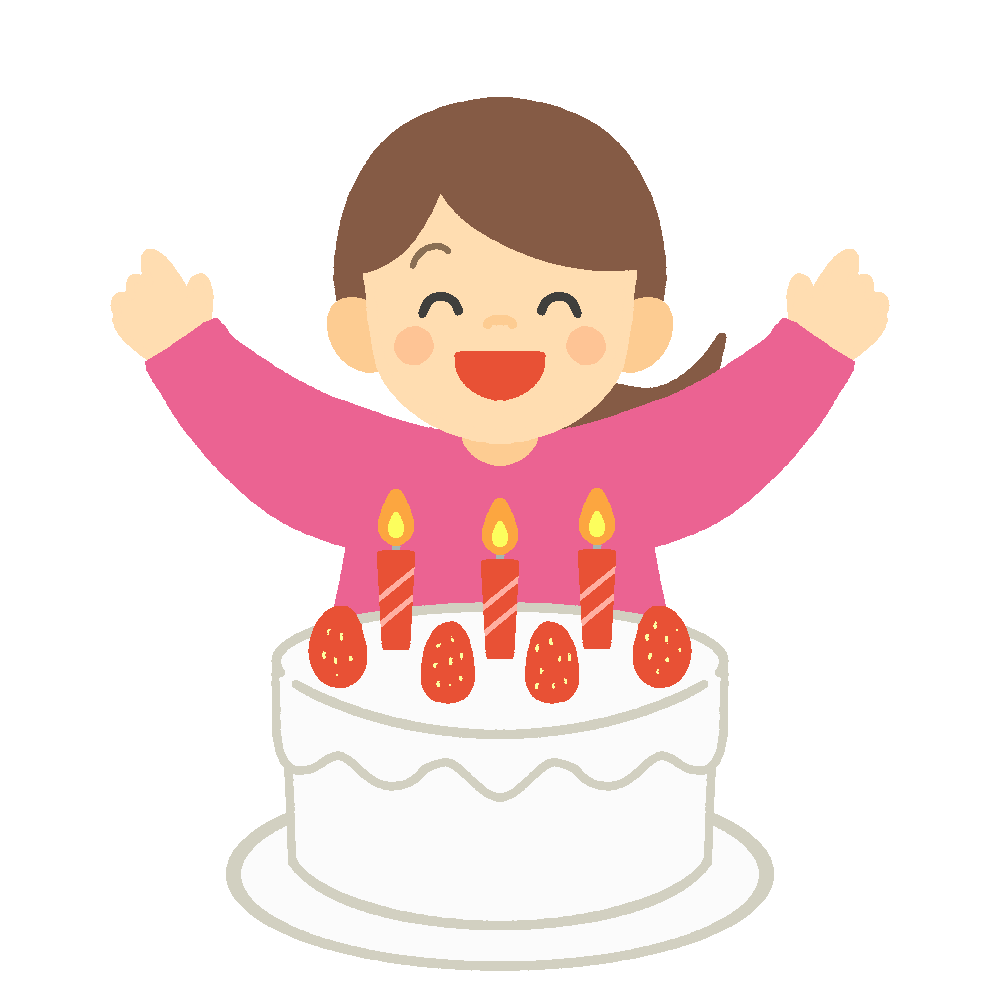 ホールケーキで誕生日をお祝いする女の子の無料イラスト素材