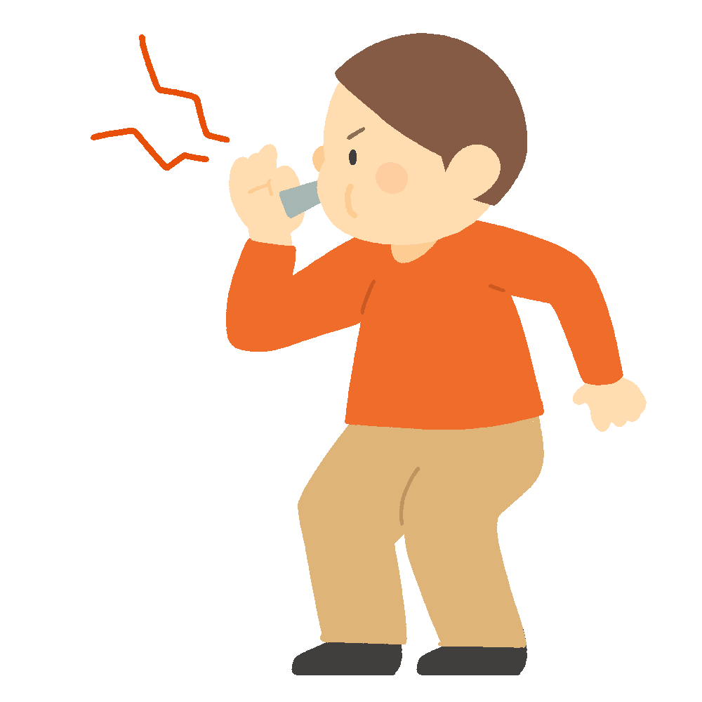 ホイッスルを吹く男性の無料イラスト素材です。防災笛や審判のイラストに。