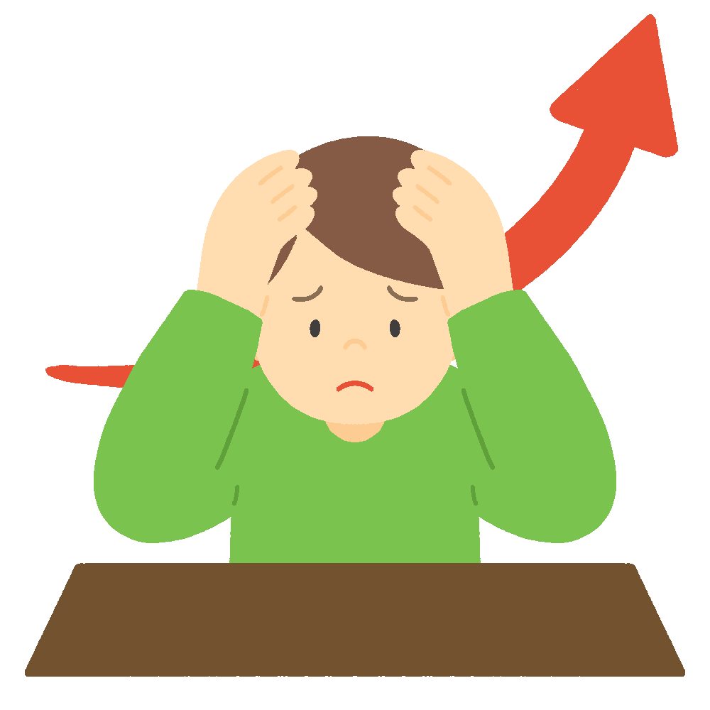 値上げ・物価高騰に頭を抱える男性のイラスト 2025 5/28 イラスト お金 人物 節約・貯金 FREE DOWNLOAD / この素材をダウンロードする 値上げ・物価高騰に困る男性と上昇の矢印の無料イラスト素材です。 関連するイラスト: 貯金通帳を見てショックを受ける人のイラスト 貯金通帳を見ている人のイラスト 物価上昇で家計に悩む女性のイラスト 物価上昇で家計に悩む男性のイラスト 使用方法 「てがキラ」の素材は、すべてリンクフリー・クレジット表記なしで利用していただくことができます。 ご利用前に必ず利用規約をご確認ください。 イラスト お金 人物 節約・貯金 シェアしてくれたらうれしいです URLをコピーしました! URLをコピーしました! 値上げ・物価高騰に頭を抱える女性のイラスト 困る男性と下がる矢印のイラスト このイラストに関連する言葉から探す 人物, お金, 節約・貯金 他のイラストを検索する リクエストする イラストのリクエストをする