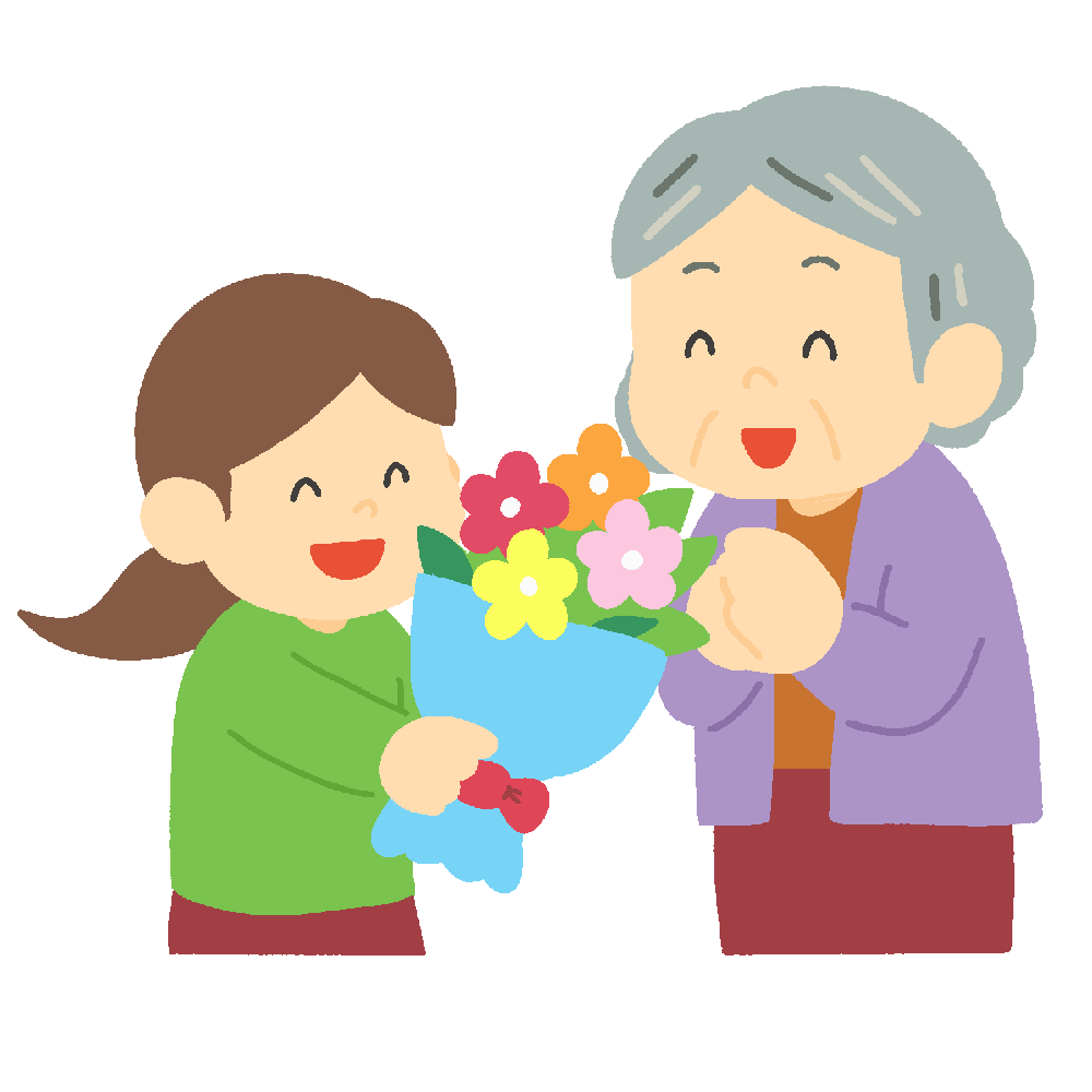 敬老の日に花束をプレゼントする子どもの無料イラスト素材
