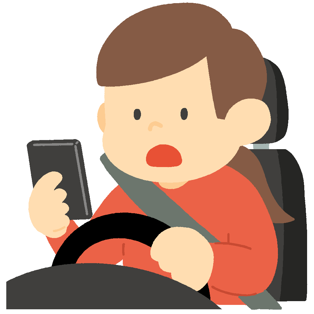 スマホを見ながらぼーっと運転する女性のイラスト 2025 6/05 イラスト 交通安全・事故 人物 情報・通信 自動車 FREE DOWNLOAD / この素材をダウンロードする スマートフォンを見ながらぼーっと車を運転している女性を描いた無料イラスト素材です。ながら運転の危険性や注意喚起を目的とした交通安全ポスターなどにご活用いただけます。 関連するイラスト: スマホを見ながら運転してハッとする男性のイラスト スマホで通話しながら運転して驚く女性のイラスト スマホで電話しながら運転する男性のイラスト スマホで電話しながら運転する女性のイラスト 使用方法 「てがキラ」の素材は、すべてリンクフリー・クレジット表記なしで利用していただくことができます。 ご利用前に必ず利用規約をご確認ください。 イラスト 交通安全・事故 人物 情報・通信 自動車 シェアしてくれたらうれしいです URLをコピーしました! URLをコピーしました! スマホを見ながら運転する男性のイラスト スマホを見ながら運転してハッとする女性のイラスト このイラストに関連する言葉から探す 人物, 交通安全・事故, 自動車, 情報・通信 他のイラストを検索する リクエストする イラストのリクエストをする