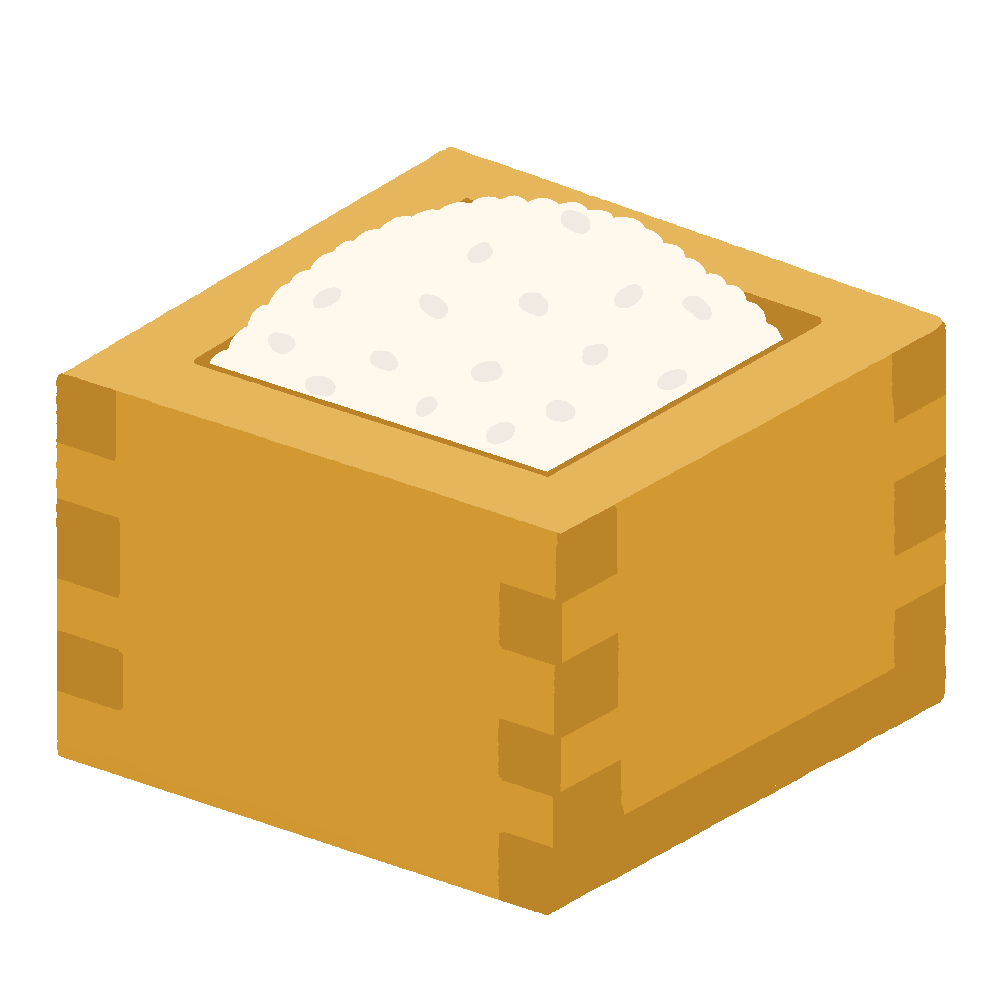 収穫されたお米が入った「枡(ます)」を描いた無料イラスト素材です。日本の伝統的な計量箱である枡にたっぷりと盛られた米粒が、実りの季節や豊かさを象徴します。食育・農業関連コンテンツ、和食メニューなどに。
