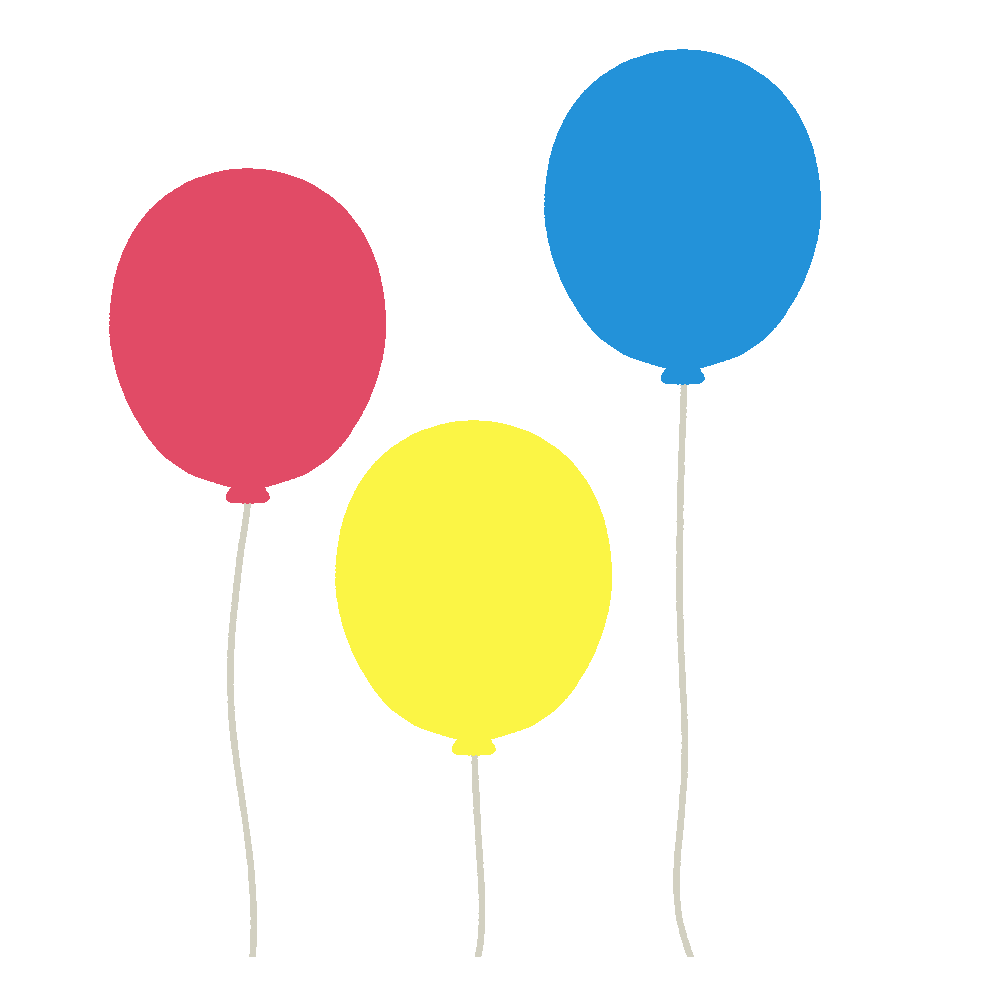 お祝い事や楽しいイベントを彩る、カラフルなたくさんの風船の無料イラスト素材です。誕生日パーティー、記念日、お祭り、などに。