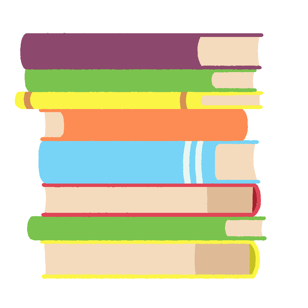 さまざまな大きさや色の本が積み重なっている様子を描いた無料イラスト素材です。読書の秋や図書館の掲示物、学習のシーン、勉強・研究・資料整理など、本にまつわるさまざまな場面に。