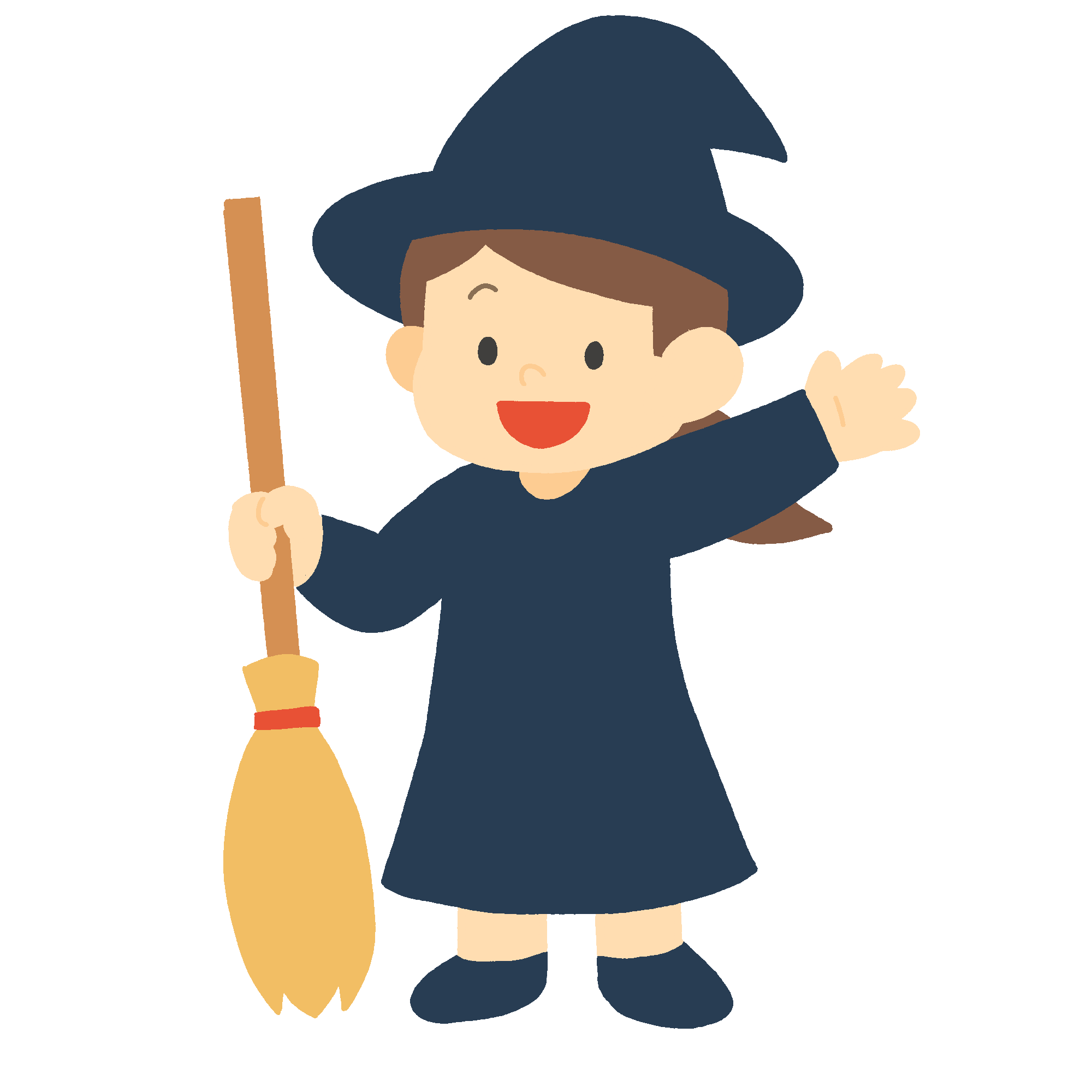 魔女の仮装をしている女の子の無料イラスト素材(ハロウィン・コスプレ・イベント)