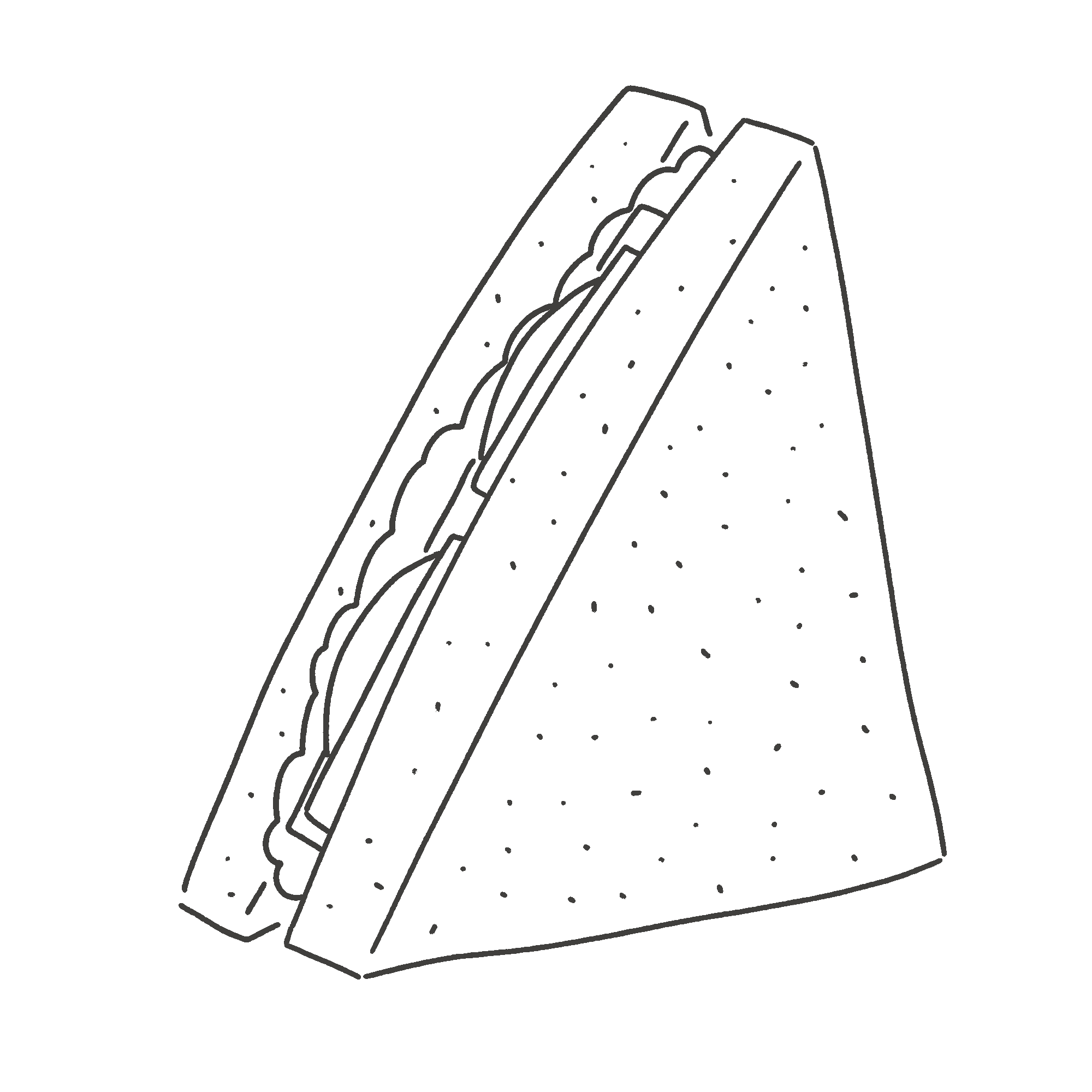 料理のレシピ紹介、パンに関するコンテンツに使える、シンプルなモノクロの線画で描かれたサンドイッチの無料イラスト素材です。