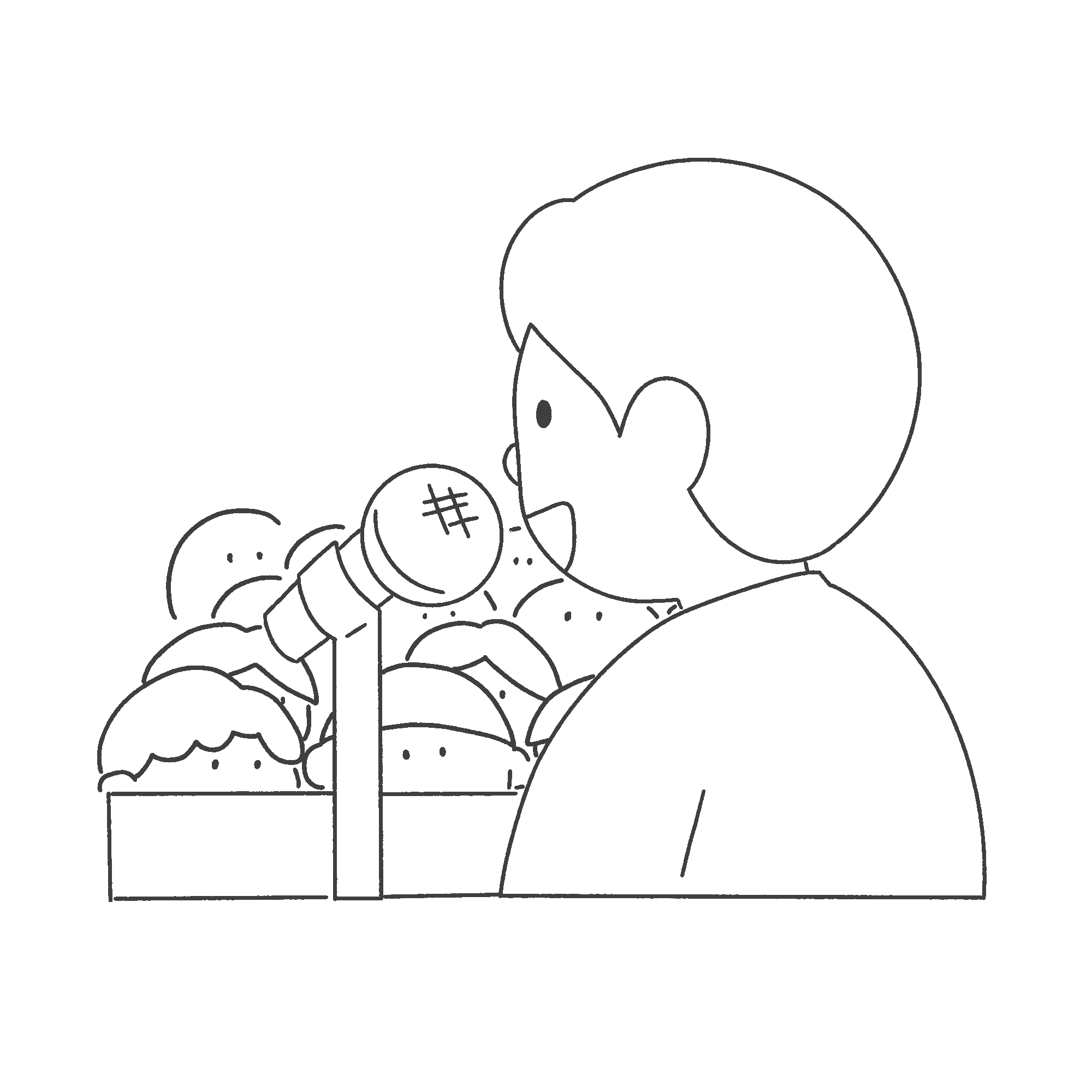 説明文案学校の掲示物、式典の案内、教育関連の資料、学年だよりやクラス通信などに使える、モノクロの線画で描かれた壇上で挨拶する校長先生の無料イラスト素材です。入学式・始業式・終業式・学校集会などのイベントに。