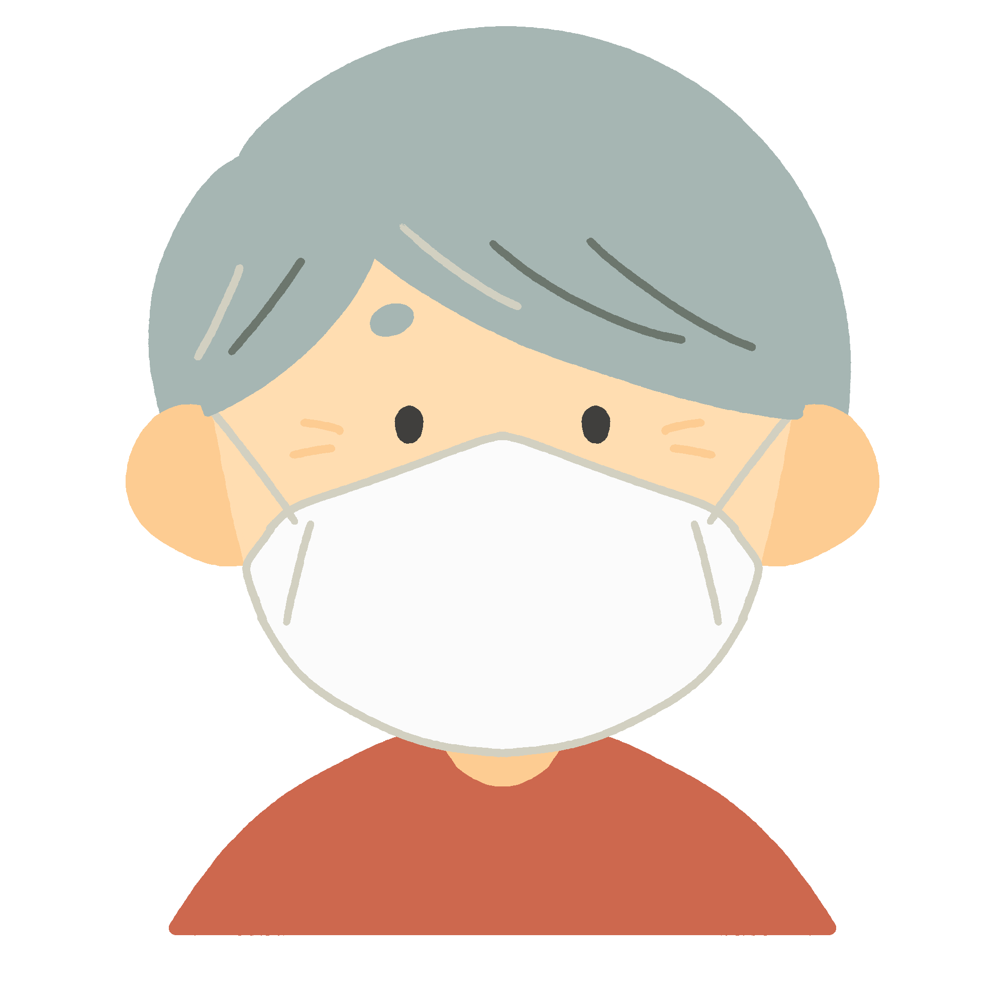 マスクを着けているおじいさんの無料イラスト素材です。風邪や感染症予防の説明資料、病院や介護施設での注意喚起ポスターに。