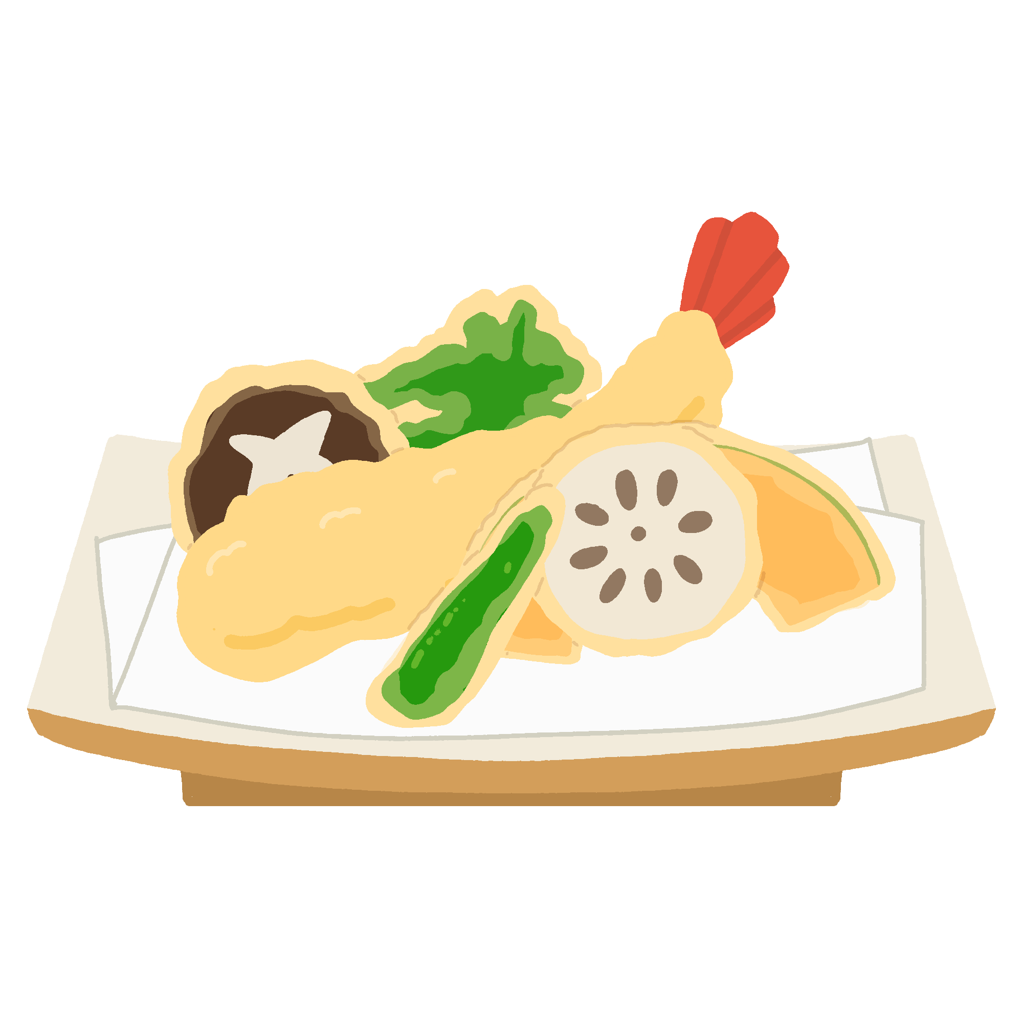 天ぷらのイラスト 2025 10/13 イラスト 主菜 食べ物 FREE DOWNLOAD / この素材をダウンロードする サクサクに揚がった天ぷらを描いた無料イラスト素材です。エビ天やかぼちゃ、しいたけ、ししとうなどの野菜天が盛り付けられた和食の定番メニューです。 使用方法 「てがキラ」の素材は、すべてリンクフリー・クレジット表記なしで利用していただくことができます。 ご利用前に必ず利用規約をご確認ください。 関連するイラスト素材 チヂミのイラスト 茶碗蒸しのイラスト オムレツ(卵料理)のイラスト スクランブルエッグのイラスト イラスト 主菜 食べ物 シェアしてくれたらうれしいです URLをコピーしました! URLをコピーしました! 醤油ラーメンのイラスト スマートフォンのイラスト このイラストに関連する言葉から探す 食べ物, 主菜 他のイラストを検索する リクエストする イラストのリクエストをする