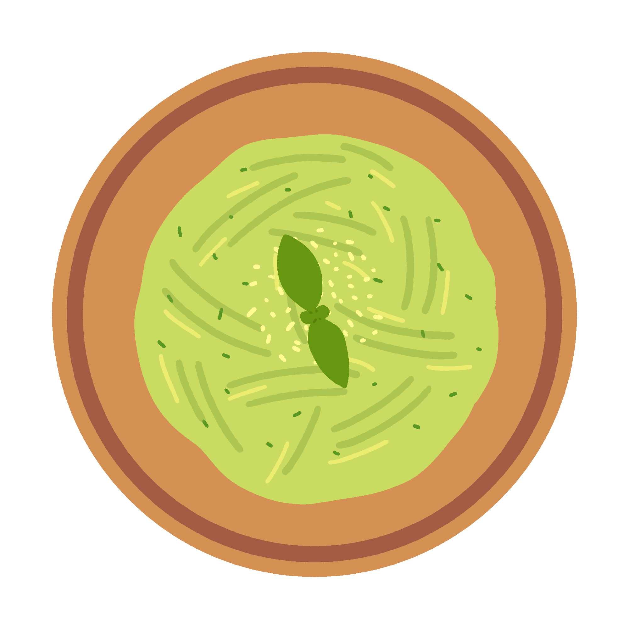 バジルの緑色ソースが鮮やかなジェノベーゼスパゲッティをお皿に盛った無料イラスト素材です。洋食ランチやおしゃれなカフェのシーンに。