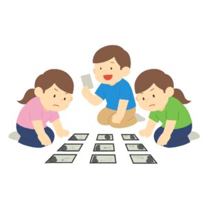 カルタ遊びや百人一首で札を取ろうとする女の子を描いた無料イラスト素材です。お正月や冬休み、家庭での遊び、学校や保育園の行事などのシーンに。