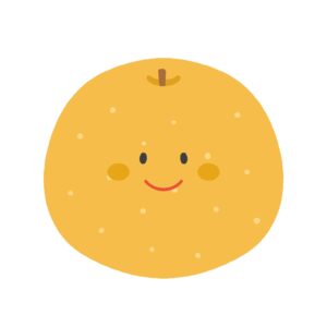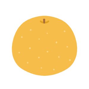 ナシを半分にカットした無料イラスト素材です。果物紹介や秋の味覚コーナーに。