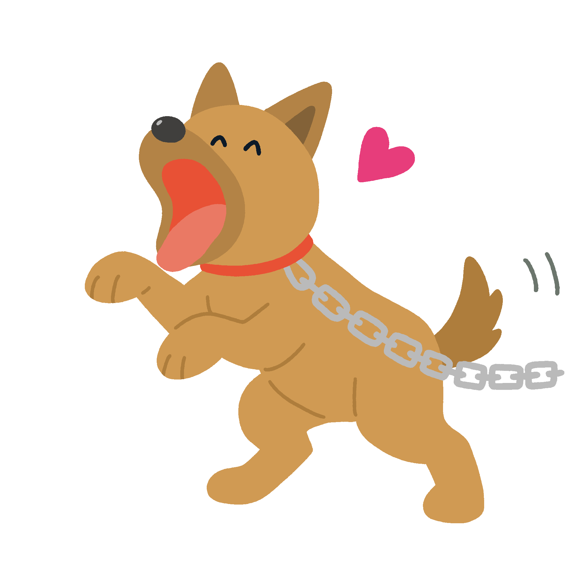 飼い主に甘える懐いた犬の様子を描いた無料イラスト素材です。ペットとのふれあいに。
