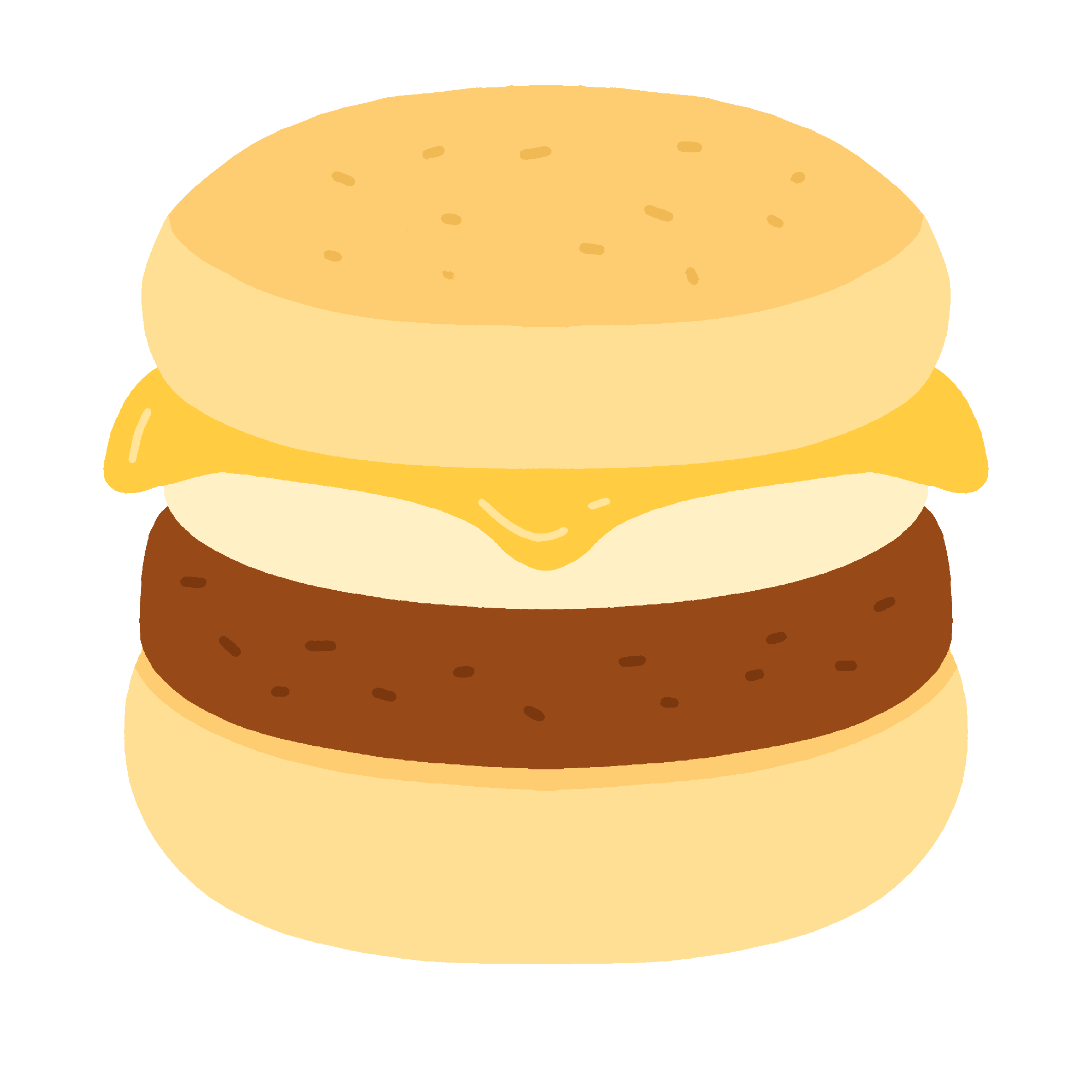 イングリッシュマフィンで具材を挟んだ、イングリッシュマフィンバーガーの無料イラスト素材です。カフェのモーニングセット紹介や、朝食バーガーのメニュー表、手作りマフィンサンドのレシピなどに。