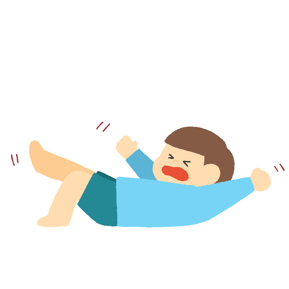 イヤイヤと駄々をこねるイヤイヤ期の男の子の無料イラストです。
