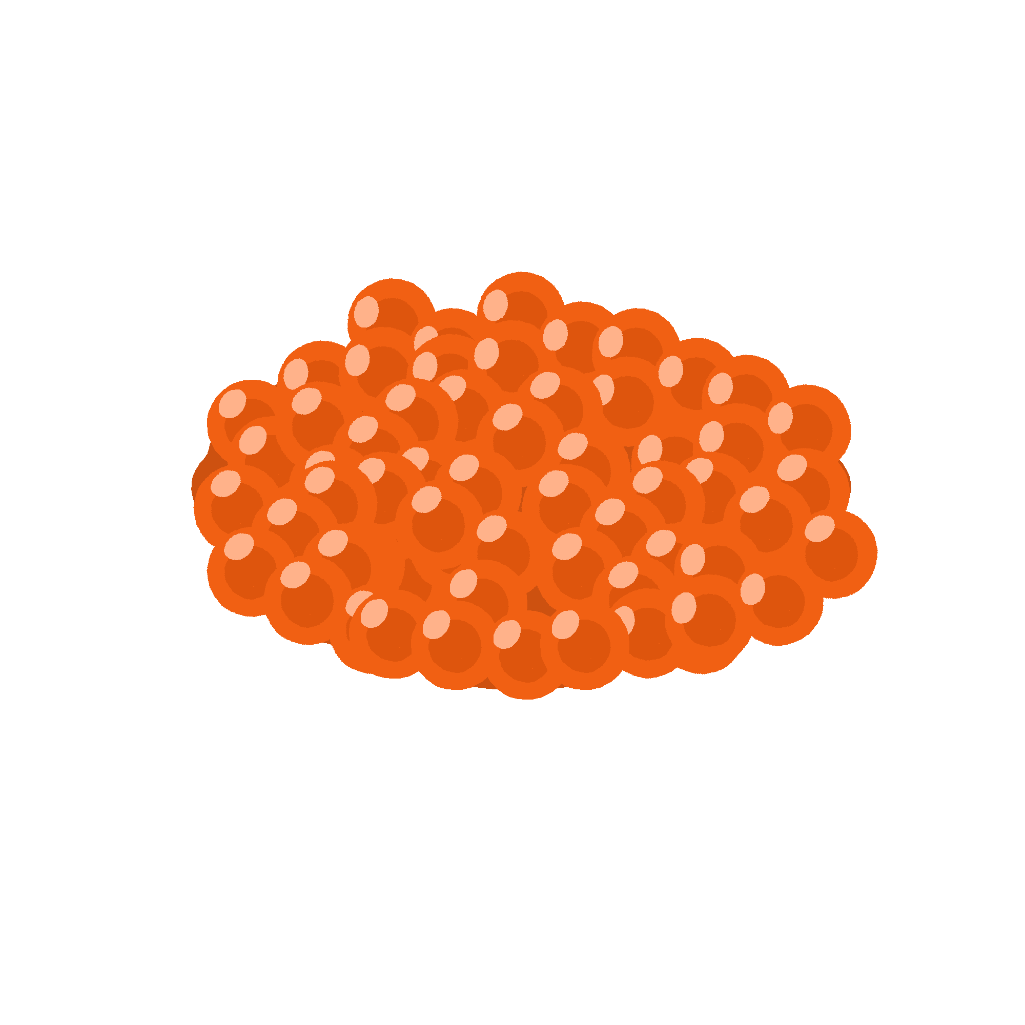 いくらの無料イラスト素材です。魚卵、寿司、海鮮丼、和食などのシーンでご利用いただけます。商用利用・加工可能です。背景透過。