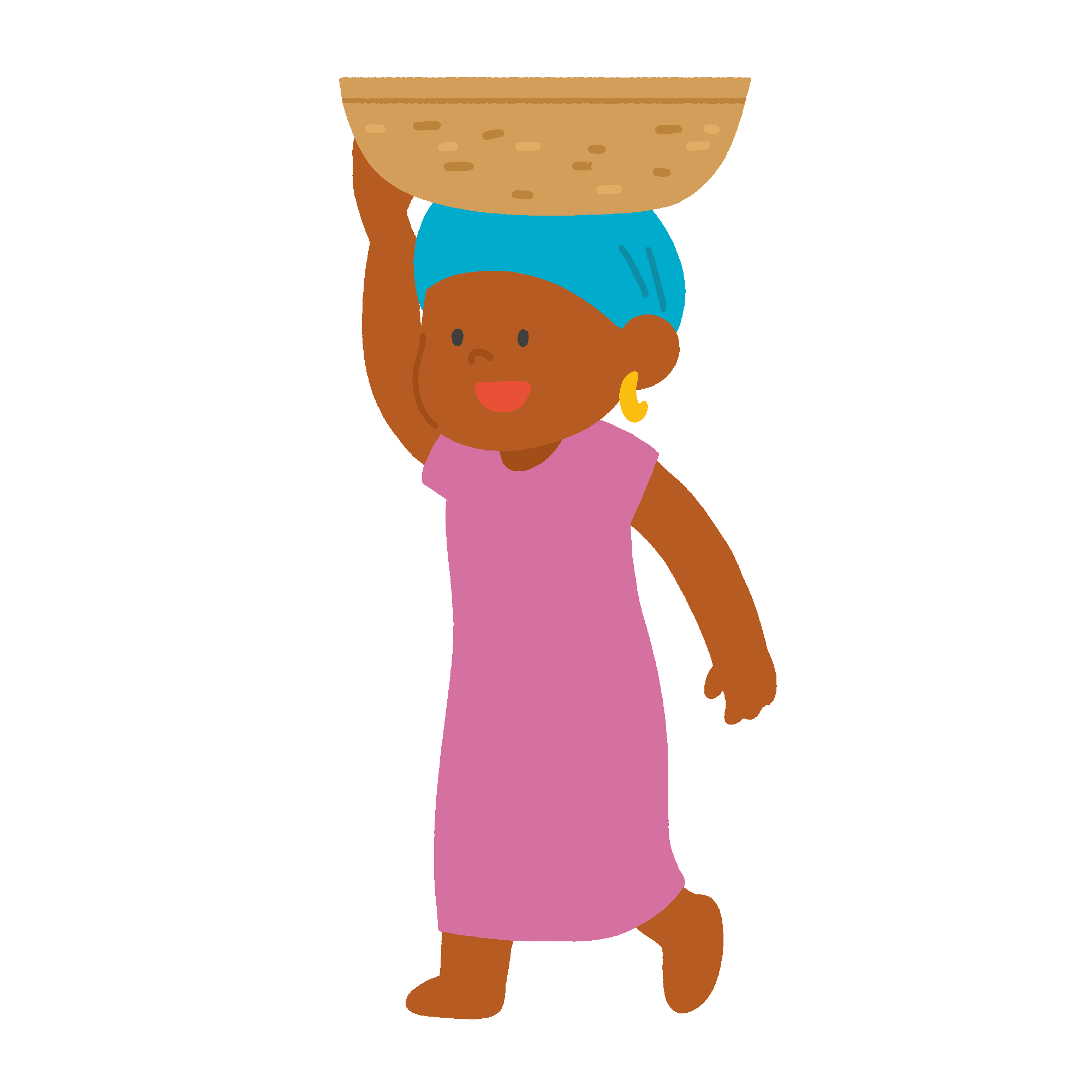 頭の上に籠(かご)を乗せて歩く人の無料イラスト素材です。アフリカやアジアなど各地で見られる運搬方法です。発展途上国の暮らしや生活様式、国際理解教育、社会科の教材などにお使いいただけます。背景透過。