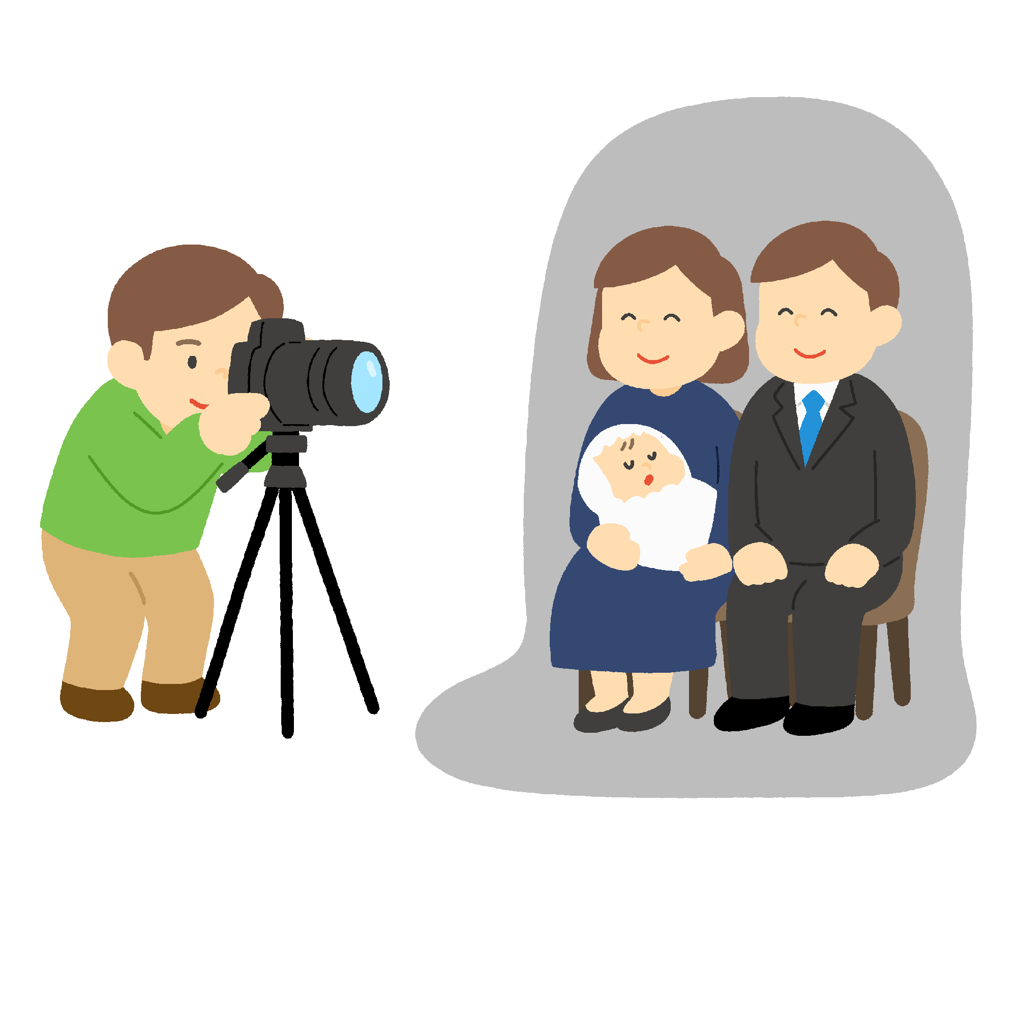 記念写真を撮るカメラマンのイラスト 2026 1/22 イベント・行事 ビジネス 人物・ポーズ お店 家族 職業 記念日・祝日 画像をフルサイズで保存 家族の記念写真を撮影するカメラマンの無料イラスト素材です。家族写真(お宮参り)の撮影シーン、フォトスタジオでの記念撮影を描いたイラストです。背景透過。 使用方法 「てがきら」の素材は、すべてリンクフリー・クレジット表記なしで利用していただくことができます。商用利用も可能です。 ご利用前に必ず利用規約をご確認ください。 関連するイラスト素材 髪を切る美容師のイラスト 美容師のイラスト お宮参りで記念写真を撮る家族のイラスト ネイリストのイラスト イベント・行事 ビジネス 人物・ポーズ お店 家族 職業 記念日・祝日 シェアしてくれたらうれしいです URLをコピーしました! URLをコピーしました! お宮参りで記念写真を撮る家族のイラスト 抹茶のイラスト キーワードから探す このイラストに関連する言葉から探す 職業, 家族, 記念日・祝日, お店 リクエストする イラストのリクエストをする