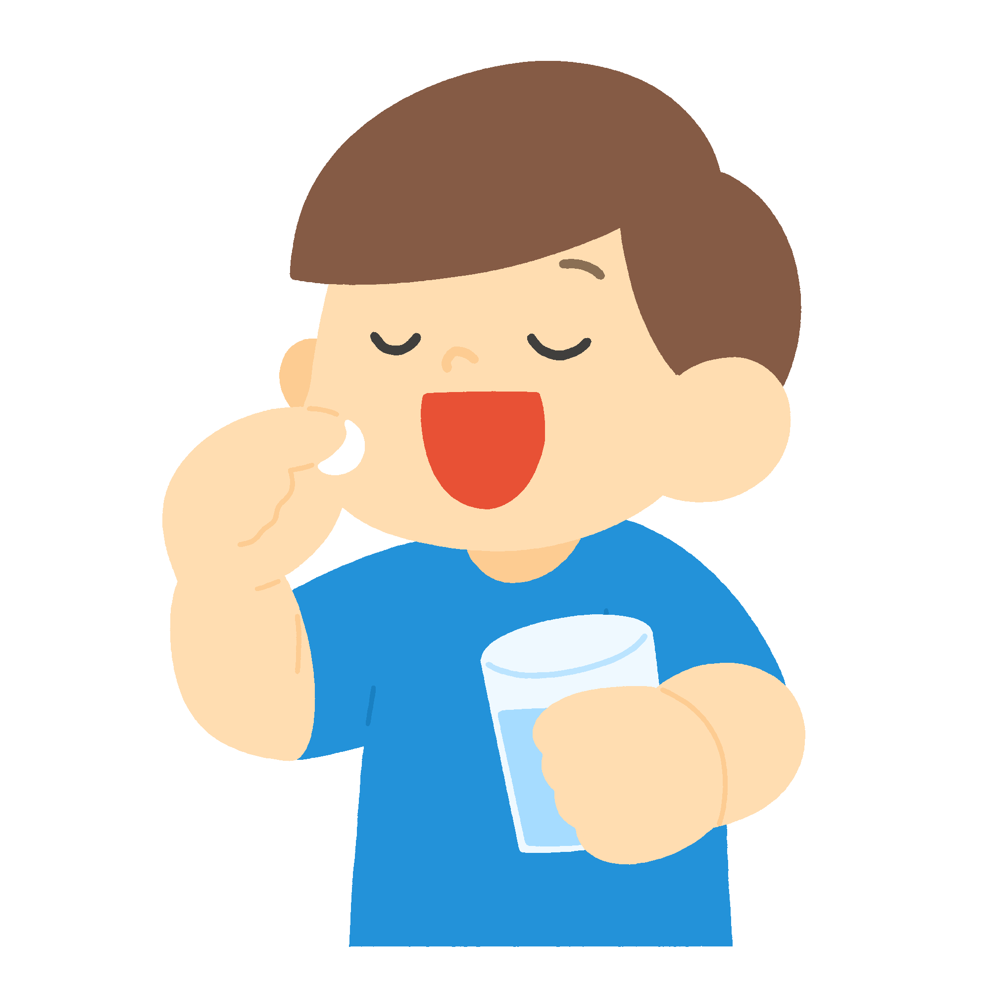 錠剤を飲む人の無料イラスト素材です。お薬を服用する姿は、健康管理、病気の治療、体調管理、医療の場面などでご利用いただけます。服薬指導の資料、お薬カレンダー、病院・薬局の掲示物、薬の飲み忘れ防止などに最適です。背景透過。