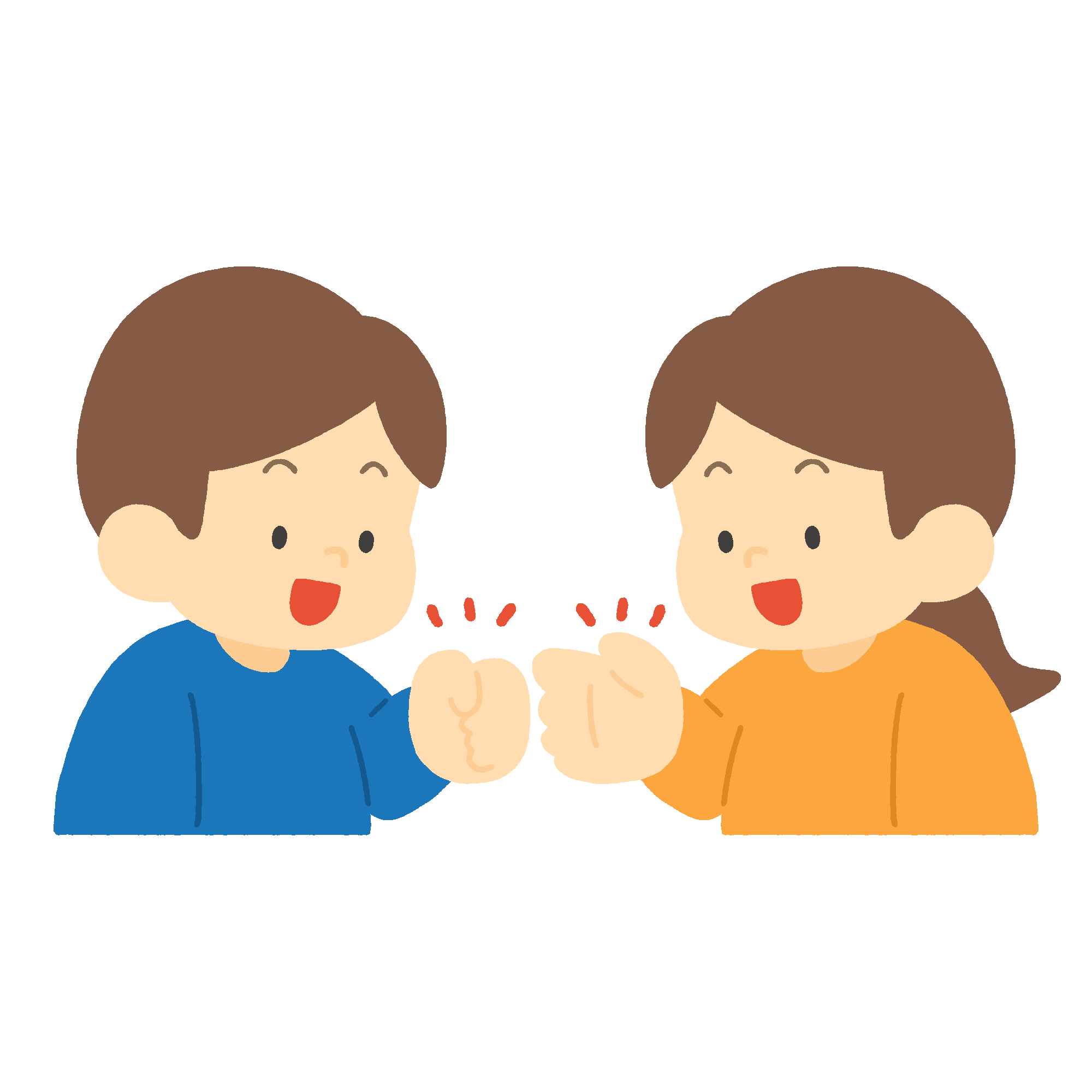じゃんけんをする子どもの無料イラスト素材です。保育園・幼稚園、小学校のレクリエーション、ゲーム大会の案内などにお使いいただけます。背景透過。