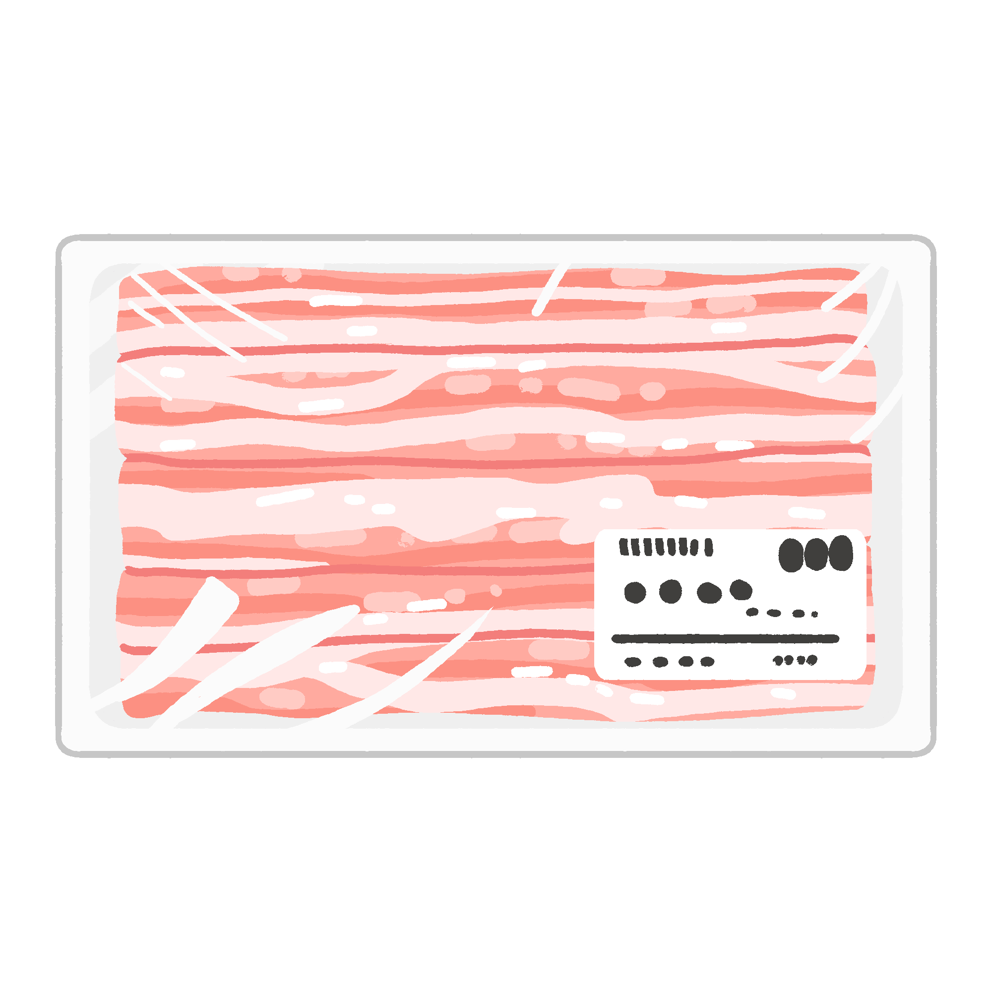 豚ばら肉(豚肉)パックの無料イラスト素材です。発泡トレーに入った豚ばら肉のイラストで、スーパーマーケットの精肉コーナーや、食育教材などにご利用いただけます。背景透過。