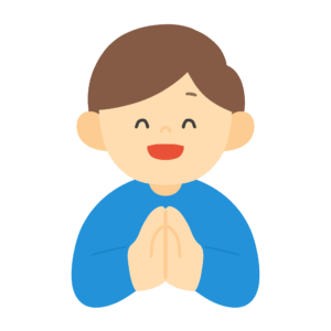 手を合わせるおじいさんの無料イラスト素材です。感謝の気持ちを表現する高齢男性のイラストで、敬老の日、いただきますのあいさつ、お盆やお彼岸、福祉施設の掲示物、シニア向け健康講座の資料、地域だよりなどにご利用いただけます。背景透過。