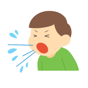 くしゃみをするおばあさんの無料イラスト素材です。背景透過。花粉症・風邪・感染症予防のポスターや資料にご利用いただけます。