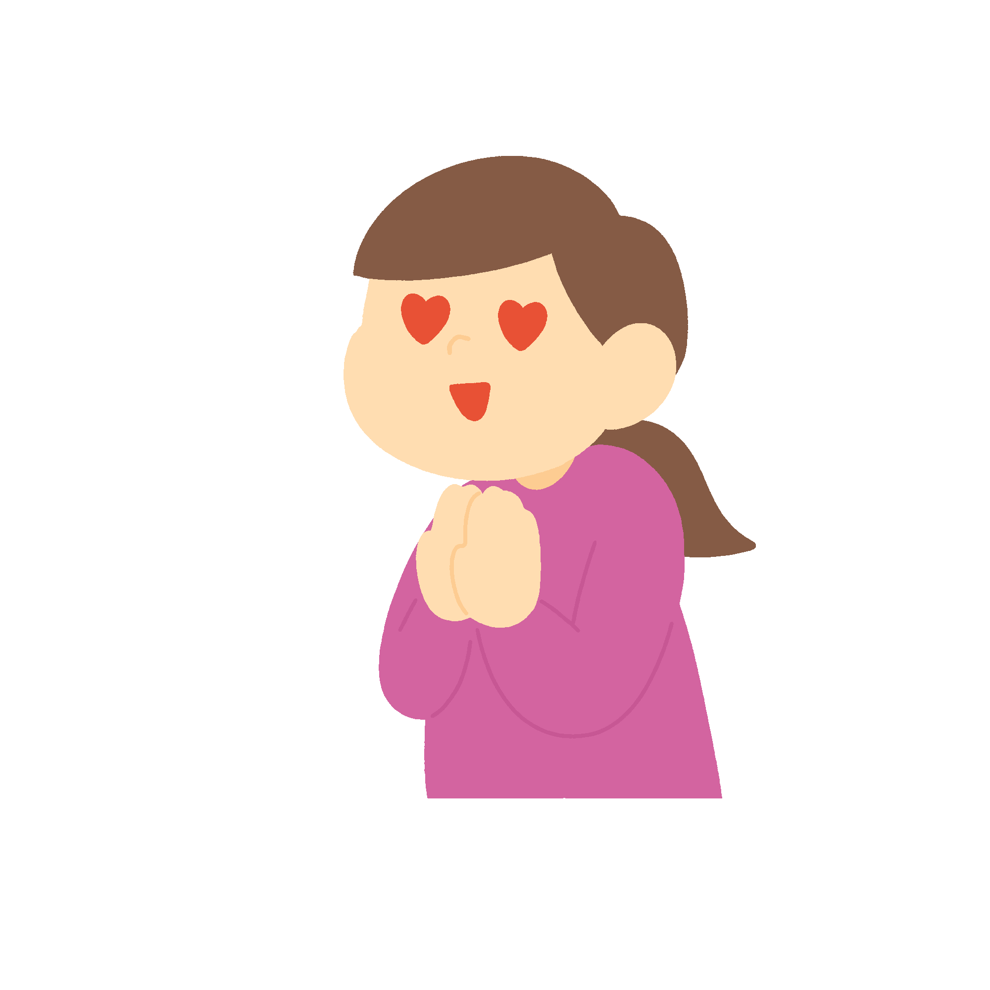 両手を握って目がハートマークになっている女性のフリーイラスト素材