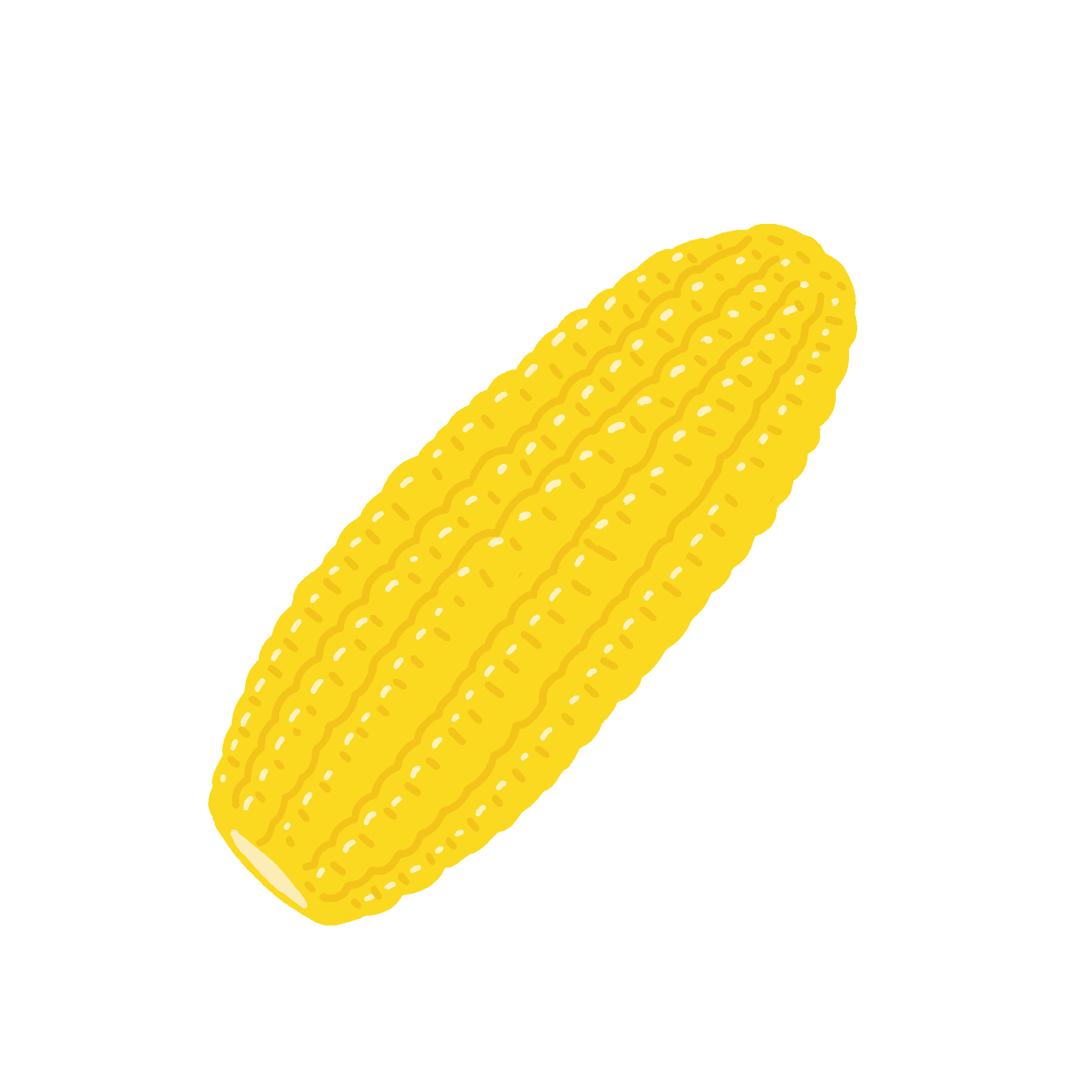 茹でたトウモロコシの無料イラスト素材です。夏野菜の代表格、とうもろこしをシンプルにかわいく描いたカラーイラストです。背景透過。商用利用可能です。給食だよりや食育プリント、夏の食べ物を紹介する場面にも最適です。