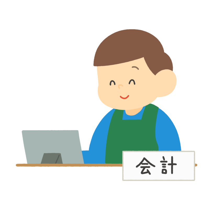 市役所の会計窓口で対応する女性スタッフ(エプロン姿)の無料イラスト素材です。自治体の広報誌・案内チラシ・掲示物などに幅広く活用できます。背景透過。商用利用可能です。区役所・町役場の収納窓口や出納業務のイメージイラストとして、行政向けパンフレットやウェブサイトにもご利用いただけます。